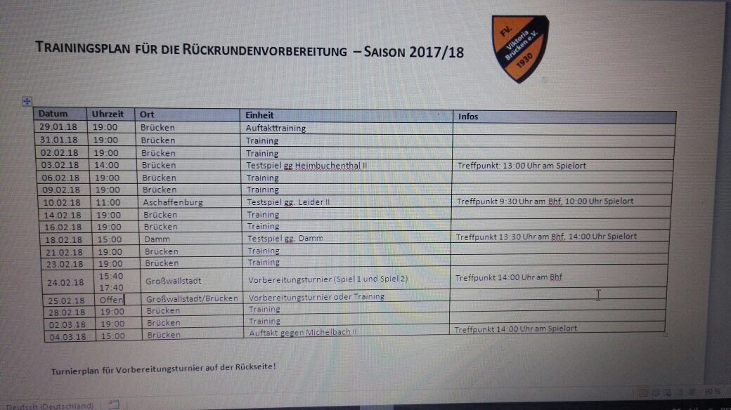 Am Montag den 29.01. um 19:00 Uhr startet die Wintervorbereitung auf die Rückrunde. Den kompletten Trainingsplan gibt es hier.