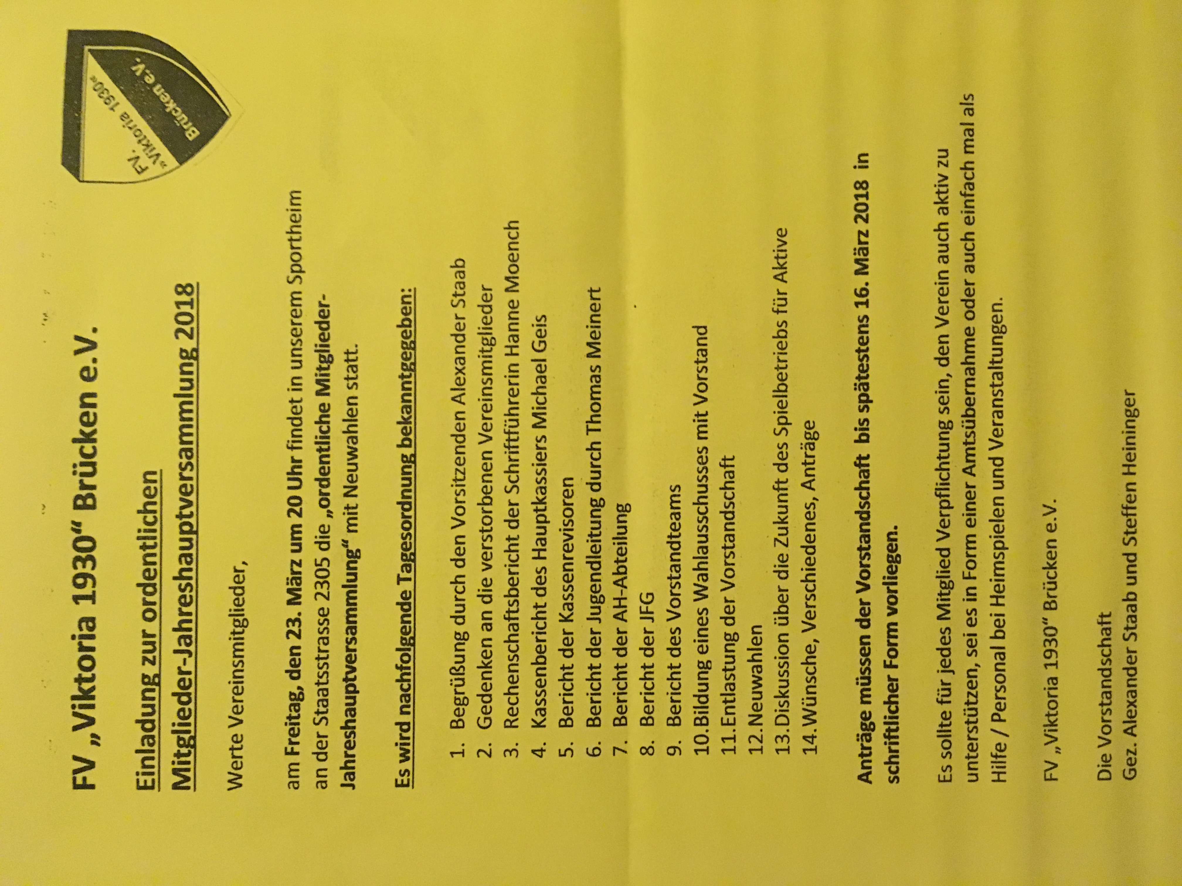 Aufgrund zukunftsweisender Entscheidungen ist eine rege Teilnahme aller Mitglieder – egal ob aktiv oder passiv – wünschenswert und dient auch der Legitimation der neuen Vorstandschaft.